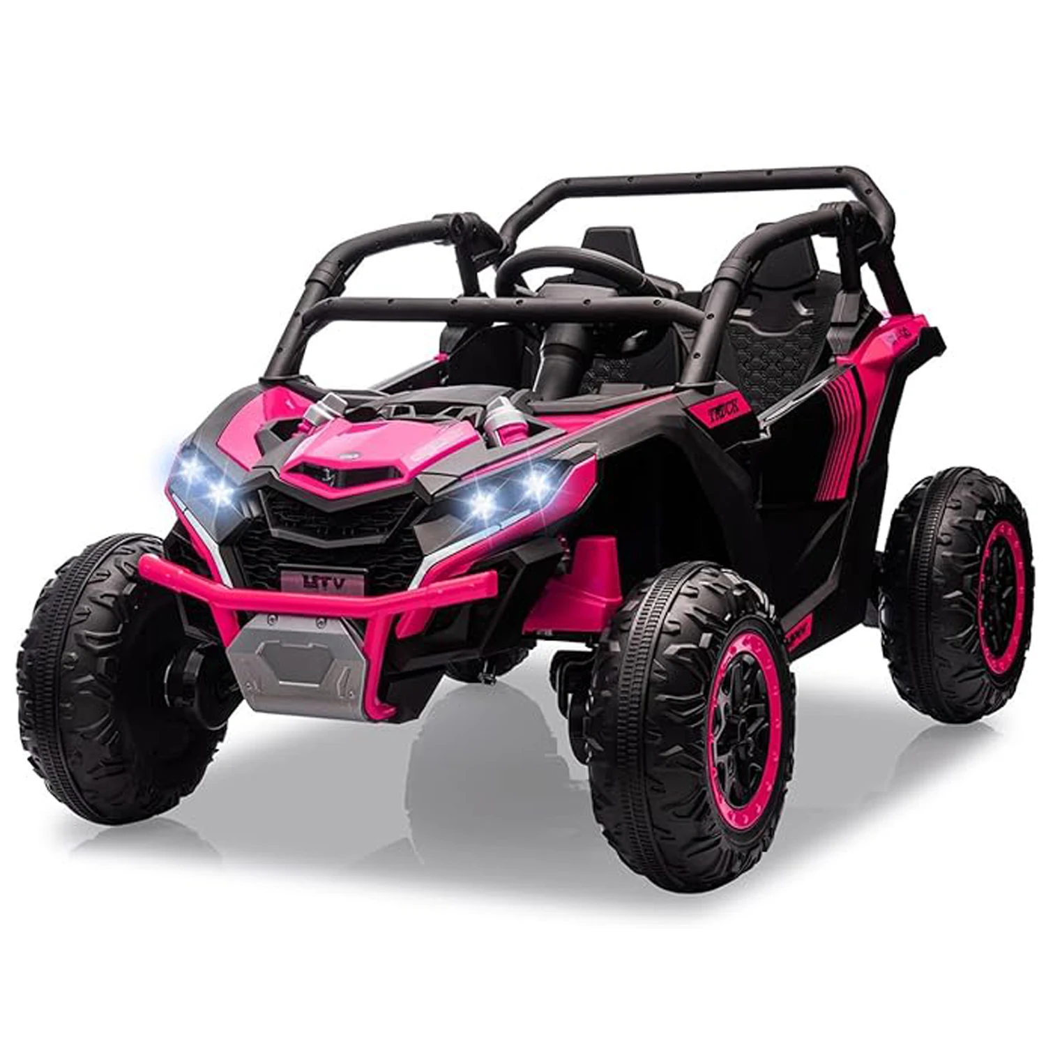 24V Kids Ride On Utv,2-Seater 4WD Off Road Electric Vehicle with Remote Control,Led Lights, 4 Shock Absorbers, One-Button Start