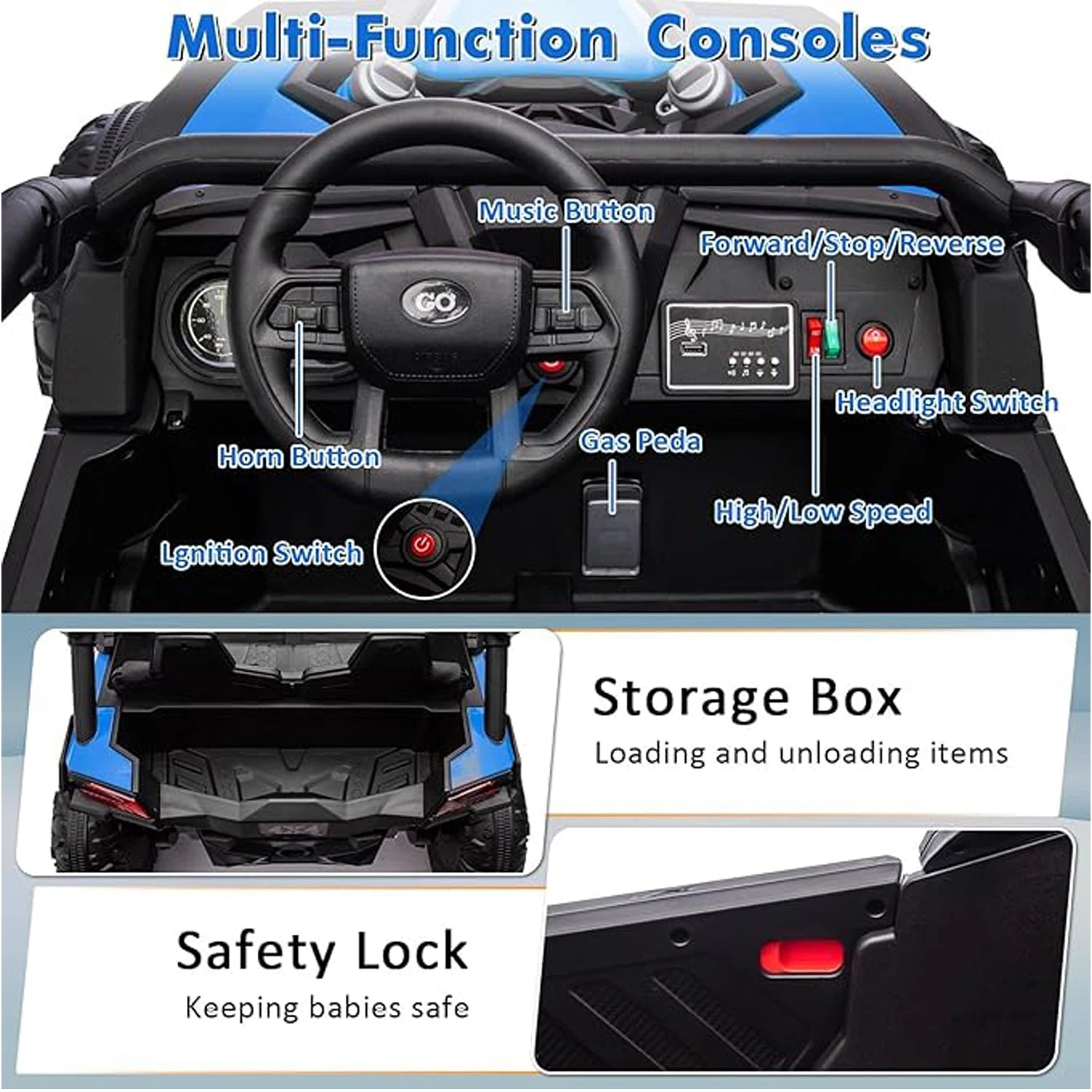 【Easy to assemble & Use】: It features one-touch , steering wheel and gas pedal, allowing your little adventurer to simply drive and . The two-seater design is perfect for sharing fun and is an ideal gift for little ones. Note: Always keep your children within your sight when they are in the car.
