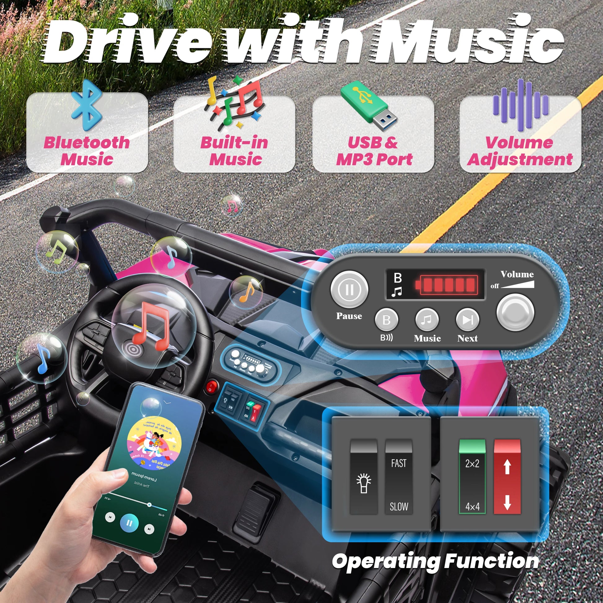 24V XL 2 Seater Ride on Toys Car for Girls, 2WD/4WD Switchable Off-Road UTV w/Long-Endurance Battery Power, 3-Speed Remote Contr